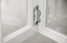 Til denne vinduestype anvendes der anverfere som lukkebeslag og stormkrog til at fastholde rammen i åbningsstilling.